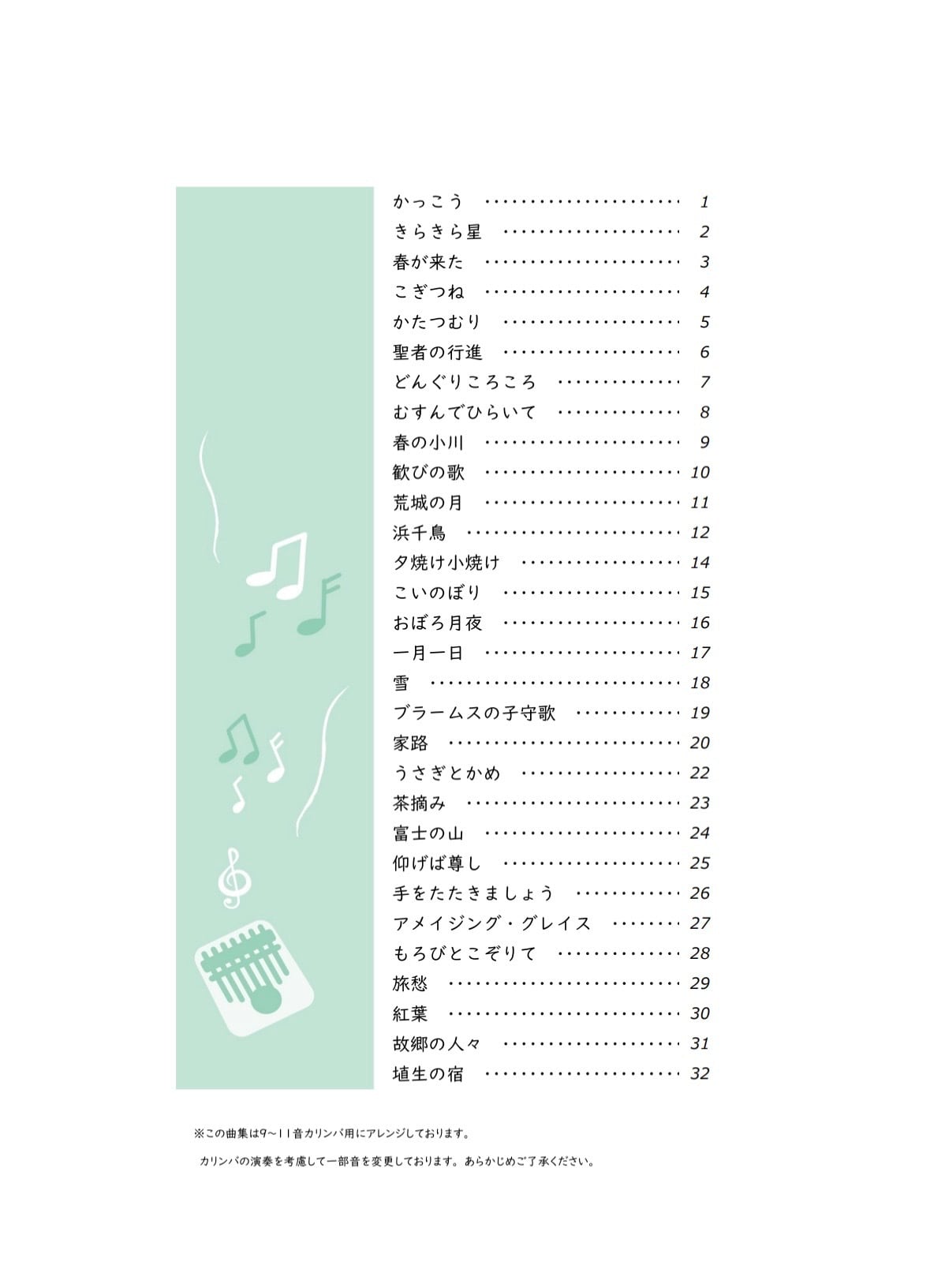 9・10・11キーカリンバのためのタブ譜です。